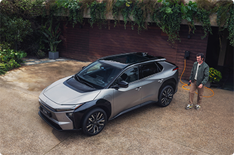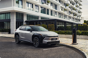 Poznaj nową Toyotę bZ4X, która charakteryzuje się nowoczesnym nadwoziem SUV i jest dostępna z elektryzującym napędem przekazującym moc na wszystkie koła.